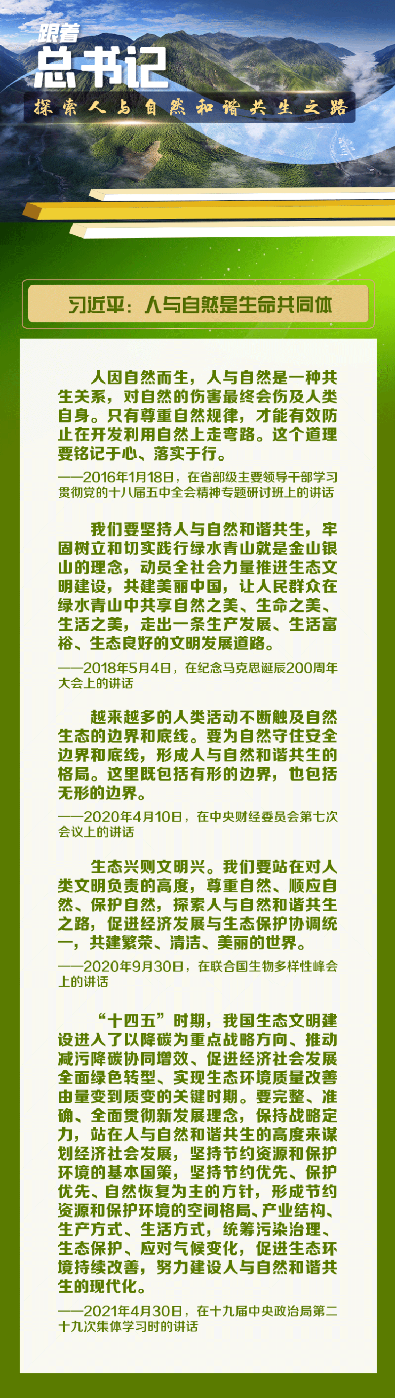 联播+“自然是生命之母,人与自然是生命共同体,人类必须敬畏自然、尊重自然、顺应自然、保护自然。”