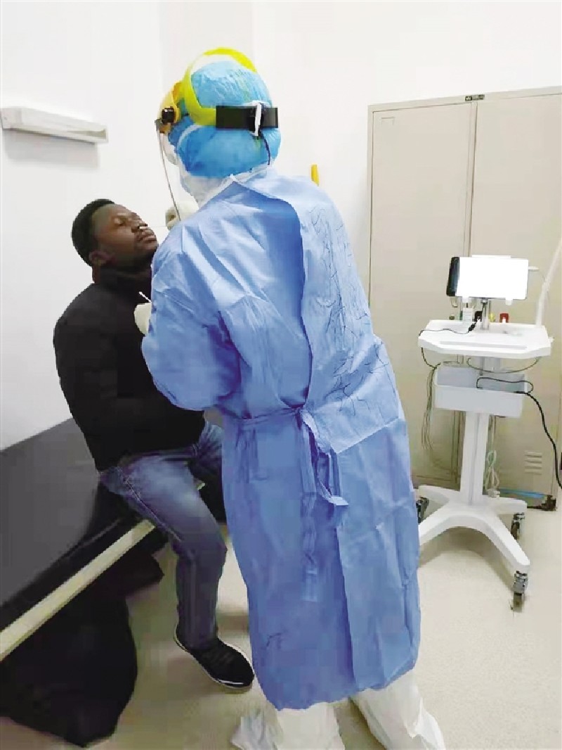 在发热门诊,医师们尽职尽责。2月3日上午,口腔科医师闫观俊在门诊值班,因为接诊病人较多,他从早上8点一直马不停蹄地工作到下午4点,脱掉厚重的防护服才感觉到身体的疲累,接过同事给他热好的饭菜,他说:“饿过头了,反而不觉得饿了。”