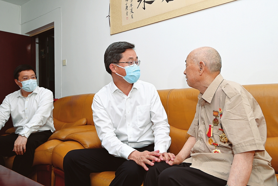 六月二十六日,省委书记蓝佛安在太原走访慰问九十三岁的新中国成立前老党员蔚荣斌,送去党的关怀和温暖。记者 史晓波 摄