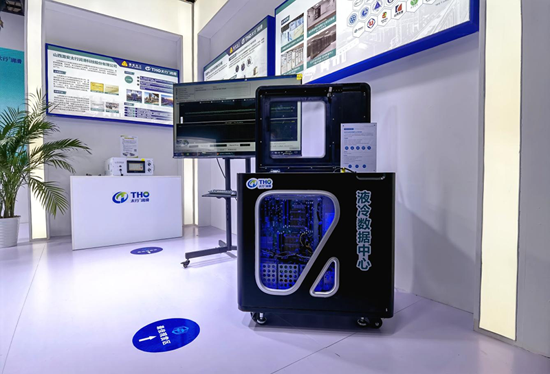 图为太行云动浸没式数据中心冷却液应用液冷装置展示。