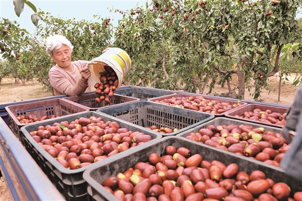 在太谷,壶瓶枣不仅是一种美味的水果,更承载着丰富的文化寓意和民俗风情。新人结婚时,一定要在新人的床上摆放几颗鲜红圆润的壶瓶枣,讨一个“早得子”的好彩头。这一习俗反映了人们对美好生活的向往和对家族延续的重视。此外,壶瓶枣还被视为吉祥的象征,在孩子满月、百天,老人寿诞和各种节庆日以及重要场合中,都扮演着重要角色。