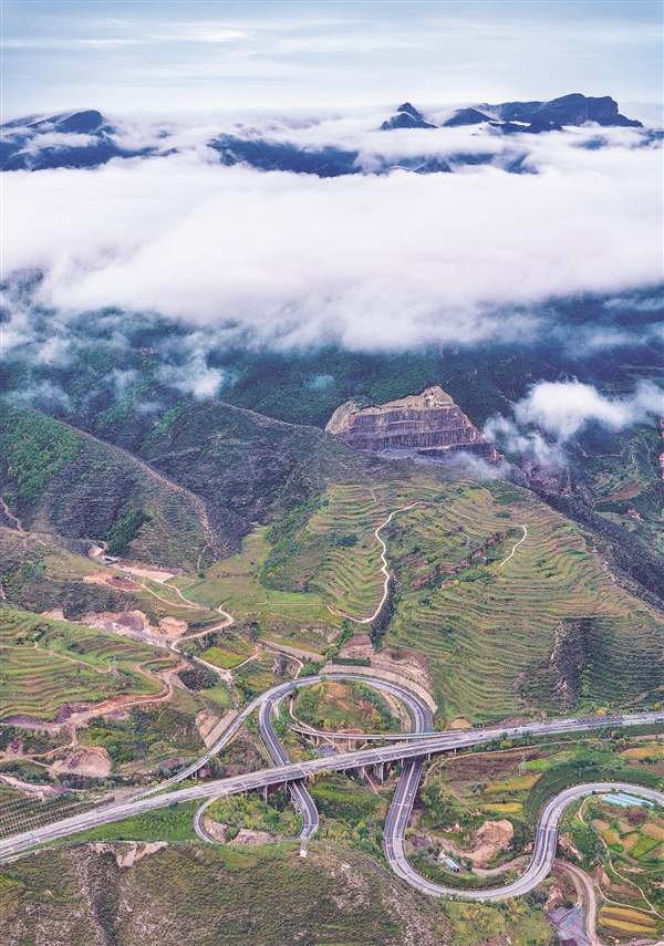 10月6日,左权县太行鳌峰山顶,一场秋雨初歇,壮美的云海景观徐徐铺展,令人惊叹不已。从高空俯瞰,现代的高速公路、桥梁与古朴的村庄、盘山路在云隙中若隐若现,蜿蜒穿行。磅礴云海、巍峨太行与点缀其间的人间烟火,共同构成了一幅动与静、自然与人文完美交融的秋日画卷。