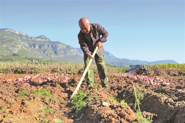 昔阳县东冶头镇东固壁村村民将红薯进行分拣、装袋。 本报通讯员 李鹏 郑晓飞 摄