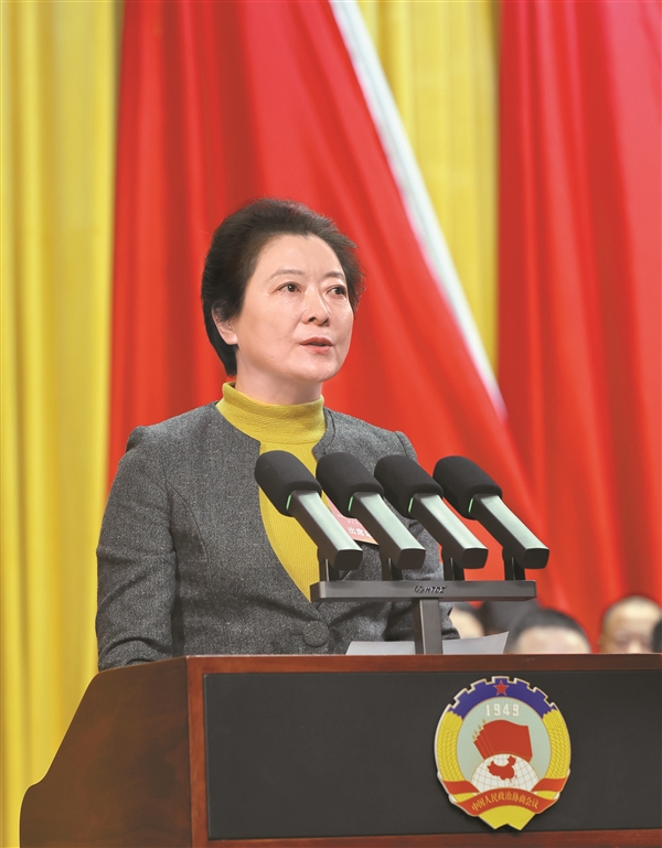 上图:任秀红代表政协第五届晋中市委员会常务委员会向大会作工作报告。