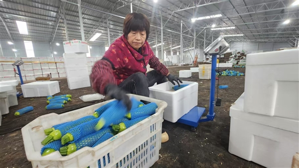 1月19日,榆次区南合流村村民正在将西葫芦装箱。目前,南合流村已建成占地约5.33万平方米、拥有34座拱棚的现代设施农业蔬菜产业园区。该园区引入水肥一体化、全自动智能高科技农业设备, 成功实现从传统农业到智慧农业的全面发展。
