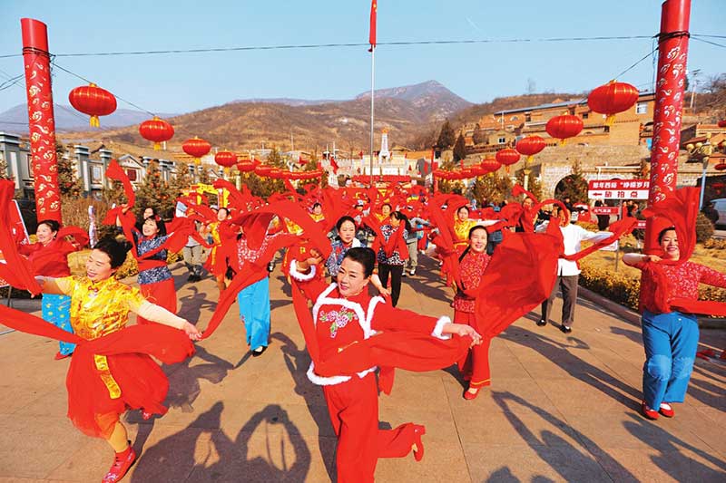 昔阳县西峪村村民扭起秧歌,为“红色年”增添喜庆气氛。张谦摄