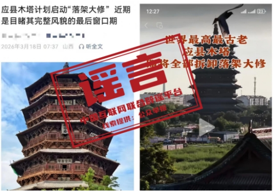 中国互联网联合辟谣平台提醒广大网民,关于应县木塔的保护与修缮信息,请以国家文物局、山西省文物局及当地官方渠道发布的消息为准,切勿轻信和传播谣言。(来源:中国互联网联合辟谣平台)